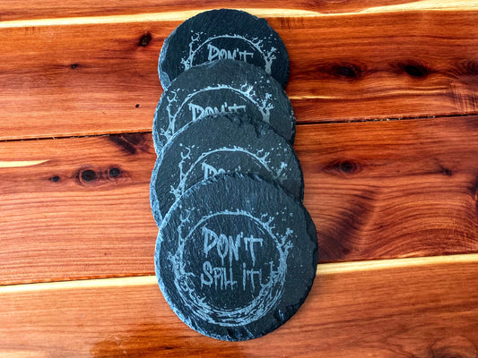Black Slate Coasters Set - Don't Spill It - Anti-Scratch