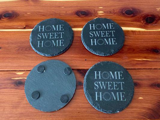 Black Slate Coasters Set - Home Sweet Home - Anti-Scratch