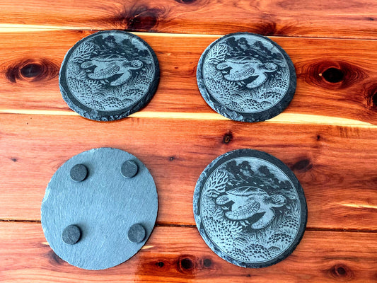 Black Slate Coasters Set - Sea Turtle - Anti-Scratch
