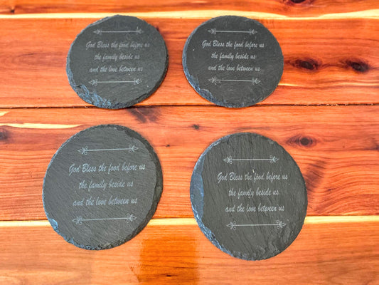 Black Slate Coasters Set - God Bless The Food Before Us...- Anti-Scratch
